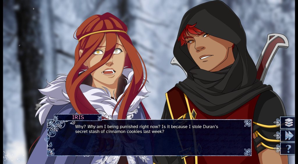 This game is treated as a fan-disc by the dev. It’s an alternate side story to the main game. There’s not really anywhere that I can see that this game would fit into the narrative of the main story, unless it could be treated as an alternate path instead of going down either of the two love interest’s routes. The game features Iris, the heroine from the main game, and Seth, one of the two love interest’s from the main game. I’d say that one does not need to play the main game before playing this one. I believe that it can be played beforehand or on its own. It’s a very good introduction to the characters and the world they are in. Playing the main game does certainly add to the experience, but I would say if you’re on the fence for the main game, or curious about this world, this side game is certainly well worth it for a lower price. I of course wholly recommend playing the main game though, and you can read my review here if you’re curious about my thoughts.