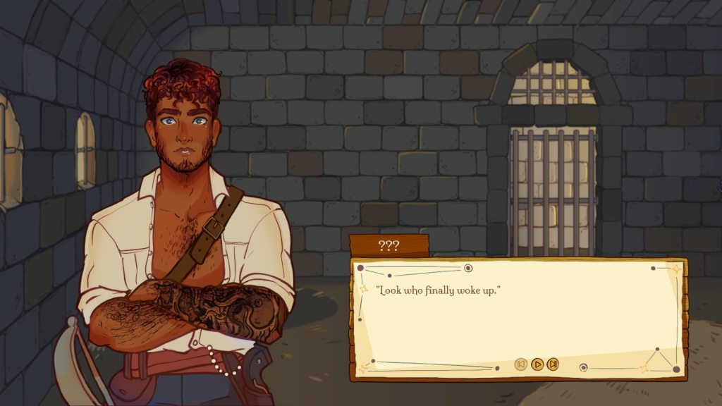 Let’s look at the game as a visual novel in the first instance. We take on the role of pirate Nova (changeable) Ramos, female captain of the ship “Lady Vengeance”; who finds herself thrown in jail, accused of sinking a number of Republic ships, having been widely seen as the last person to have been aboard all of the lost vessels; and who therefore stands as number one suspect for a grievous act which has broken a 300 year truce between the Arcomare Alliance (the aforementioned republic of four states) and the pirates of Libertown.