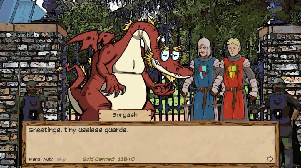 Borgash is a 5,400 year old dragon, and like most males of a certain age, is something of a grumpy old man; although in the wider picture, he’s not a bad sort. So, he likes to roast the occasional irritating human. That’s not his fault, it’s an innate characteristic of his species. Cut him some slack, he has a right to be grumpy after discovering that someone has issued a quest to have him killed for stealing the crown of a dead king… that he is entirely innocent of any part in.