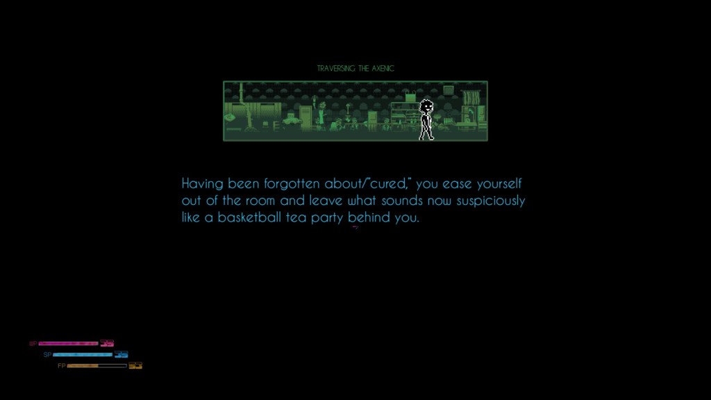It’s also worth noting that when I shared some pictures with friends, they said they had difficulty reading some of the colored text. This mainly applied to purple text against a black background, though I’m willing to bet that with how many colors are used for text in this game, there would be other problematic combinations. I had no issues with reading the text, but that could definitely hamper a player’s enjoyment. You would be missing out mostly on flavor text, so that would not stop a player from proceeding in the game. Yet with the flavour text being so good, it would be a shame to not be able to read it.