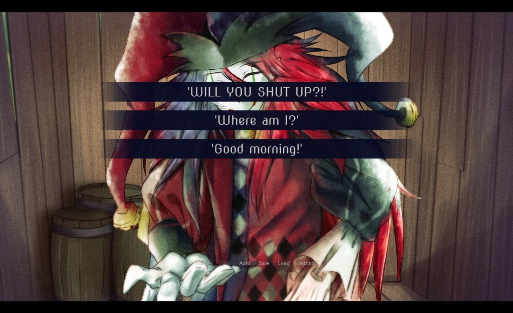 I can’t go much in depth of the story, mostly because there isn’t much to it and what there is, would just spoil the entire game. I ended up really enjoying this game though, and it took me about 23 minutes to 100% complete it. There are a few choices to make that lead you down different endings. I will say that normally there is always a choice in games that I can kind of align myself with on choosing, but this game does not have one of those. So I had to choose one of the options that most felt like something I would make. Honestly though, the choices were kind of silly, but also made the main character seem like a bit of a terrible person if you chose the rougher ones. I’m sorry Jester for telling you to shut up 😅